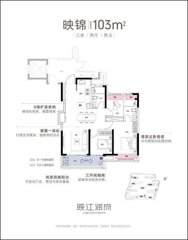 作为华润置地海派3.0作品,映江润府的卷,更在于其硬核的产品力,尤其在户型的设计上,堪称卷到极致。映江润府全盘仅规划89和103两种户型,每个都堪称王炸。
