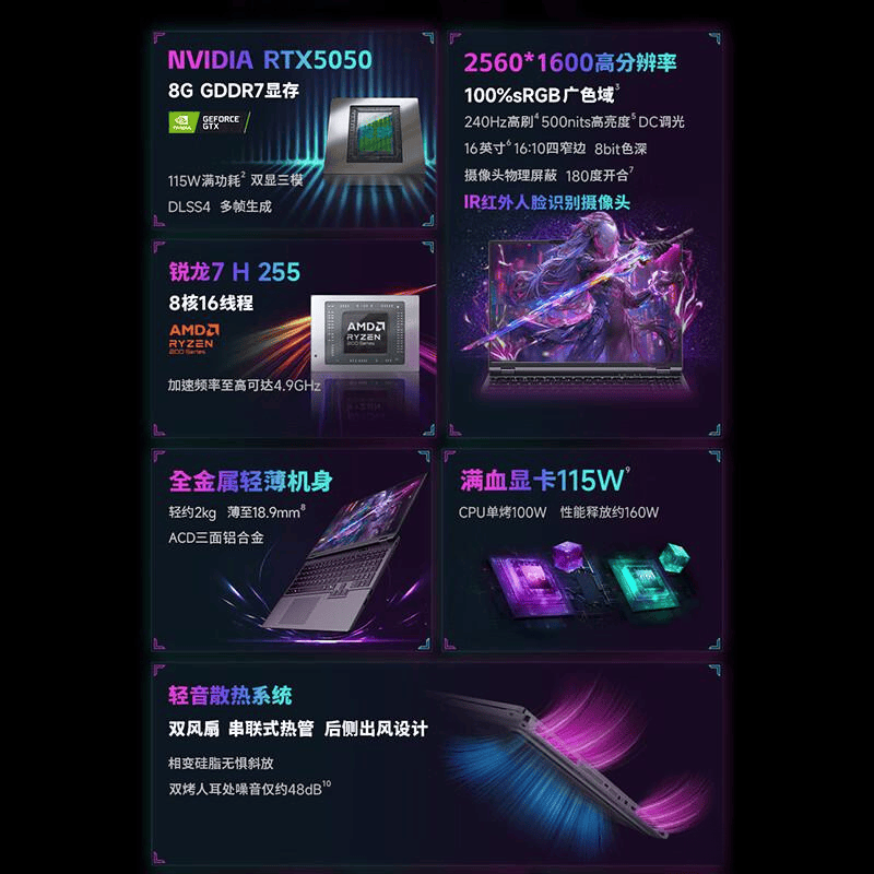 推荐理由:强大游戏性能,搭载锐龙7处理器与RTX 5050显卡,轻松应对高负荷游戏和多任务操作,助你随时畅享比赛乐趣。