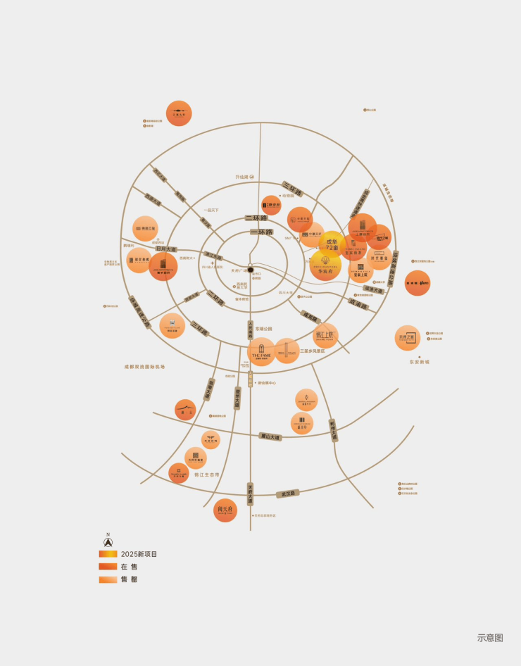 双TOD交通枢纽:紧邻二环路、中环路、成洛大道、蜀都大道等4大城市主干道;2/4/7/8号线大地铁线路交织;近临槐树店站、迎晖路站、万年场站等3地铁站,万象通达;